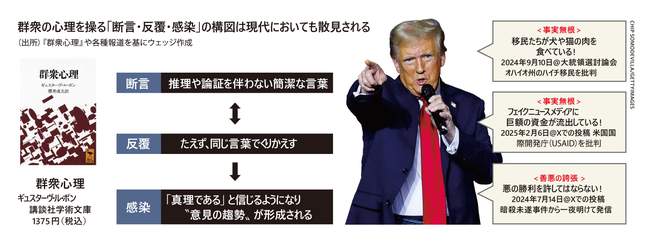 冒頭の3人の中でも、特にトランプ氏は、断言、反覆、感染を、SNSなどを使いフル活用している。